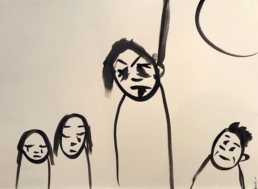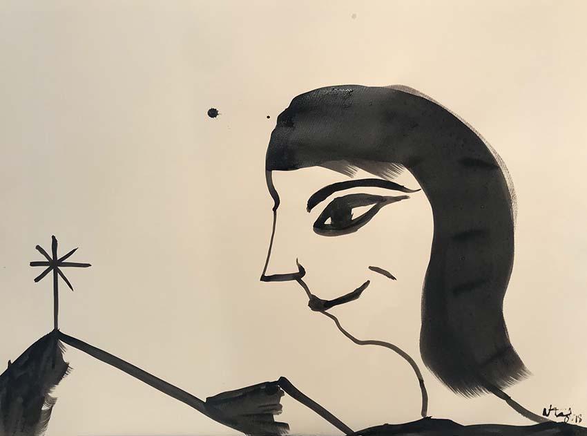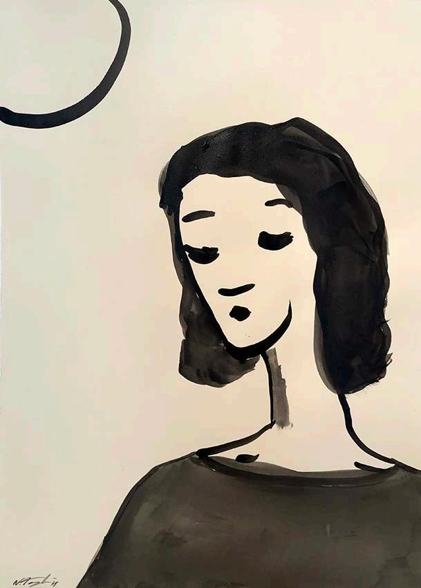 Noah Taylor A Haiku is generally composed of seventeen syllables, 2018 ink on paper
