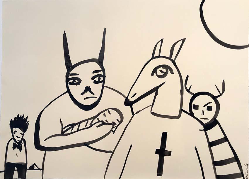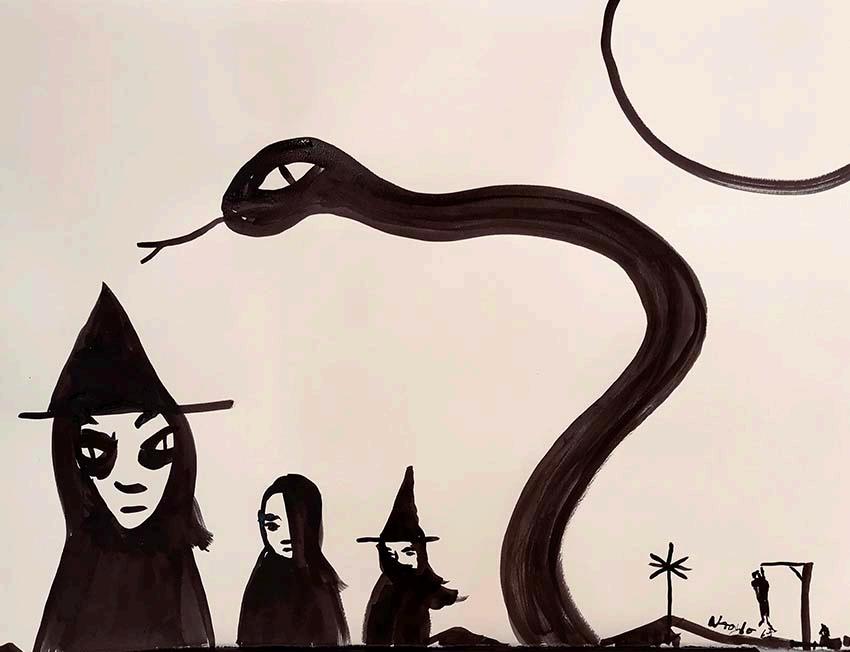 Noah Taylor Witch and serpent, 2018 ink on paper