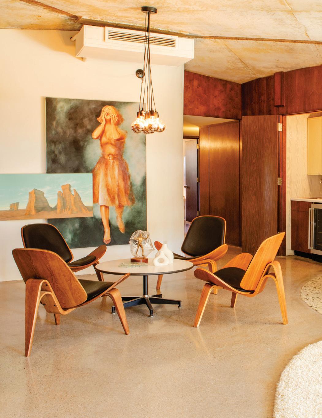 The couple even refurnished with some of their own midcentury collections after an estate sale sold many of the Regiers’ belongings. Period furniture and artwork has been thoughtfully arranged to enhance the home’s architecture rather than compete with it.