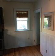 The addition of painted beadboard on the ceiling brought in the historic feel of the house, while other elements feel really fresh, like the large farmhouse sink. The pop of the traditional blue and white (my favorite color combination) on the window treatments help the space feel classic, while the pattern has a bit of modernity to it with its white foreground. The refinished medium-brown wood floors help add warmth to the space.