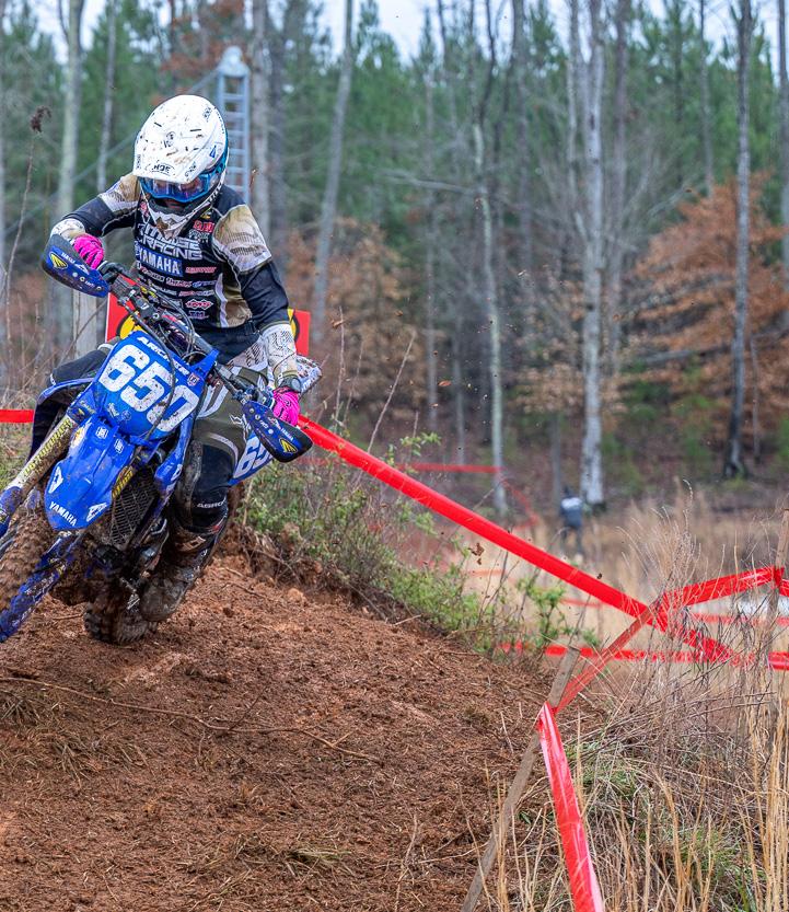 throughout the course. As the green flag flew it was Trail Jesters KTM Racing’s Korie Steede grabbing the $100 Trail Jesters WXC Holeshot Award, but it would be Over and Out/ GASGAS/RG Factory Racing’s Rachel Gutish emerging from the woods first as the racers made their way through timing and scoring. Gutish would lead the first two laps of the race, but AmPro Yamaha’s Rachael Archer was inching closer and closer to Gutish as the laps worse on.