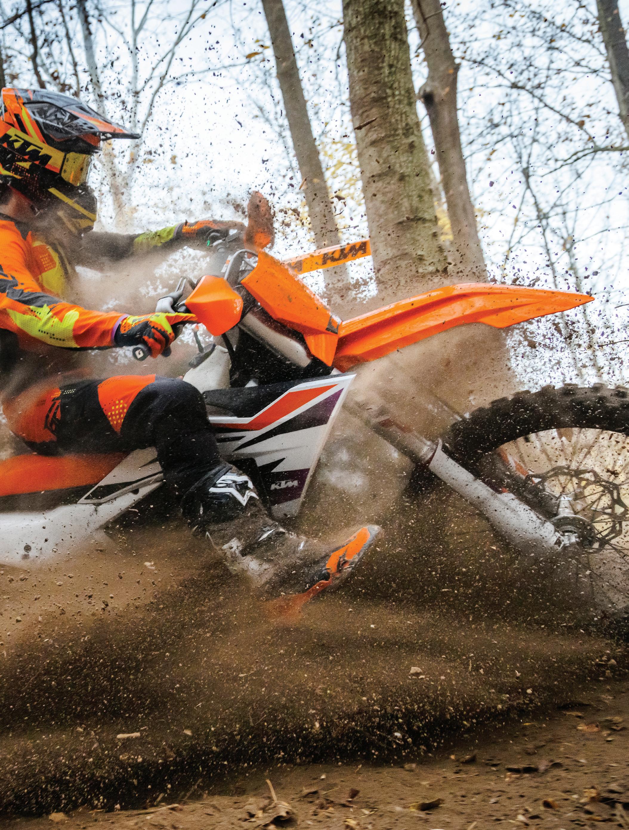 Maximum power at the least possible weight, amplified by an all-new closed cartridge spring fork and cross-country specific suspension settings, the 2024 KTM 300 XC is a power-packed frieght train equipped to dominate on race weekend. SEE
