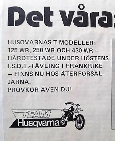 represent Husqvarna in the United States. True to the negative instinct from the leaders in Huskvarna, the simple answer was "no", with a polite twist of saying "thank you for the interest". Their point of view was enhanced by such factors as no desire to export, no motocross market available, no knowledge of recreational riding and last but not least, an unfavorable dollar-exchange rate which made Swedish goods expensive across the Atlantic.