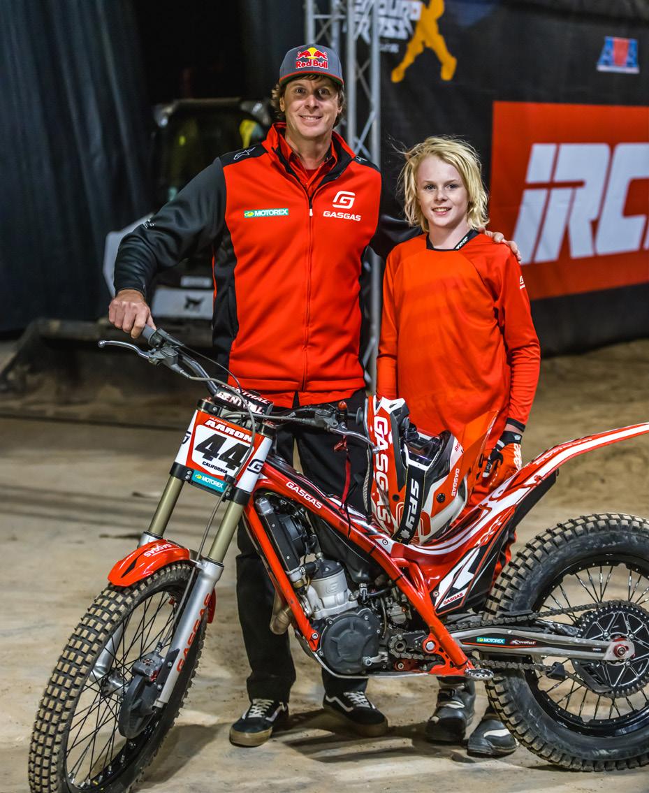 Inset photo: Murphy with his dad, Geoff Aaron, 10-time AMA National Trials Champion.