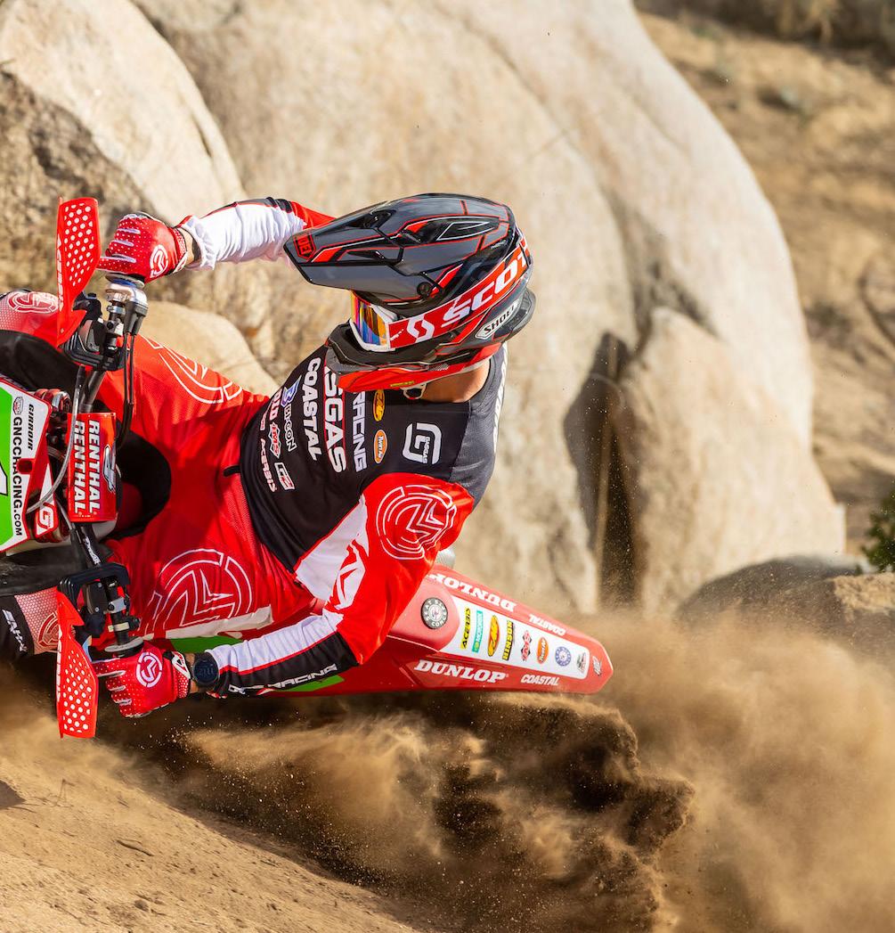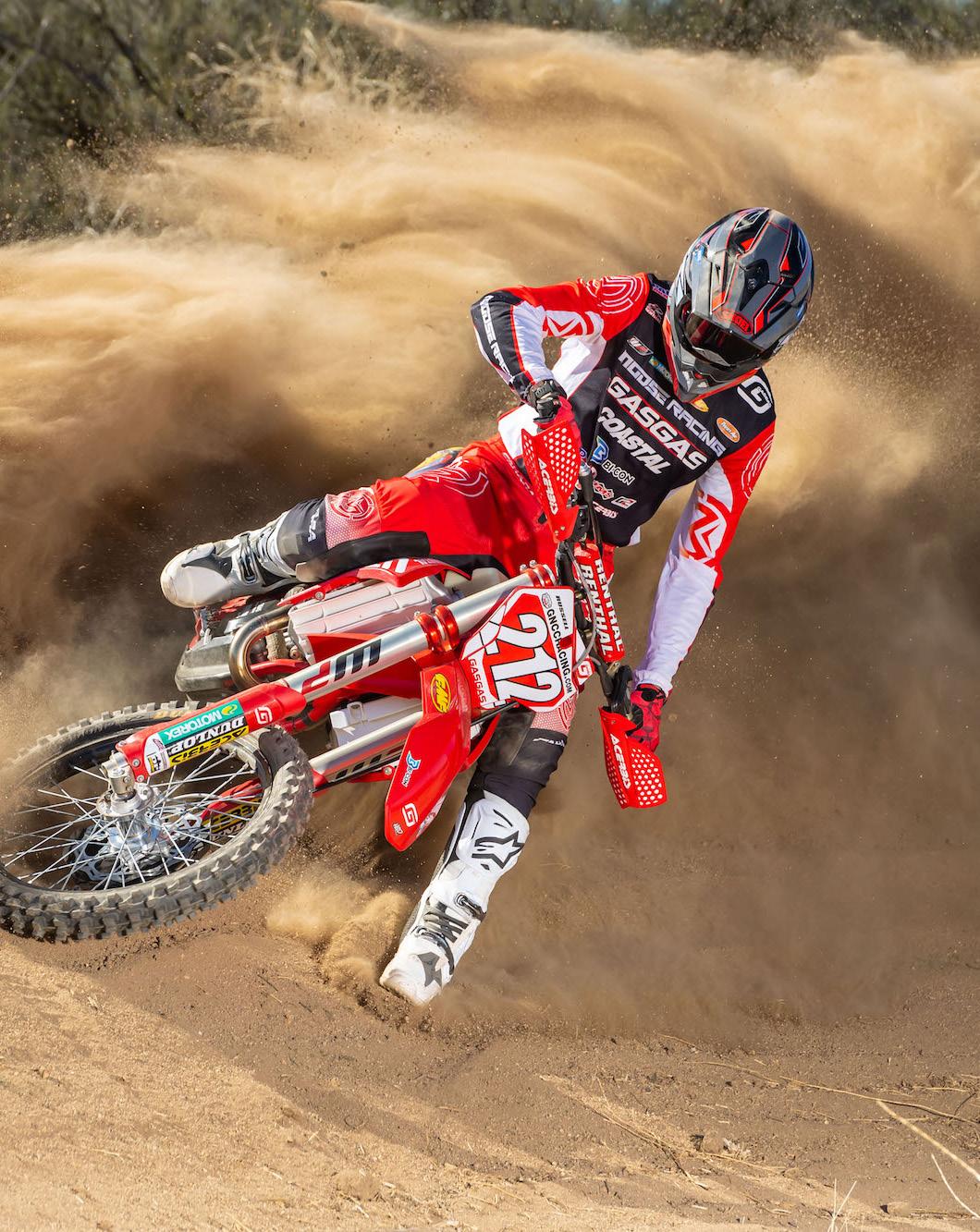 Main photo: Murphy (GasGas #44) battles Jack Williford (GasGas #85b) and Dylan Lozano (Sherco #714).