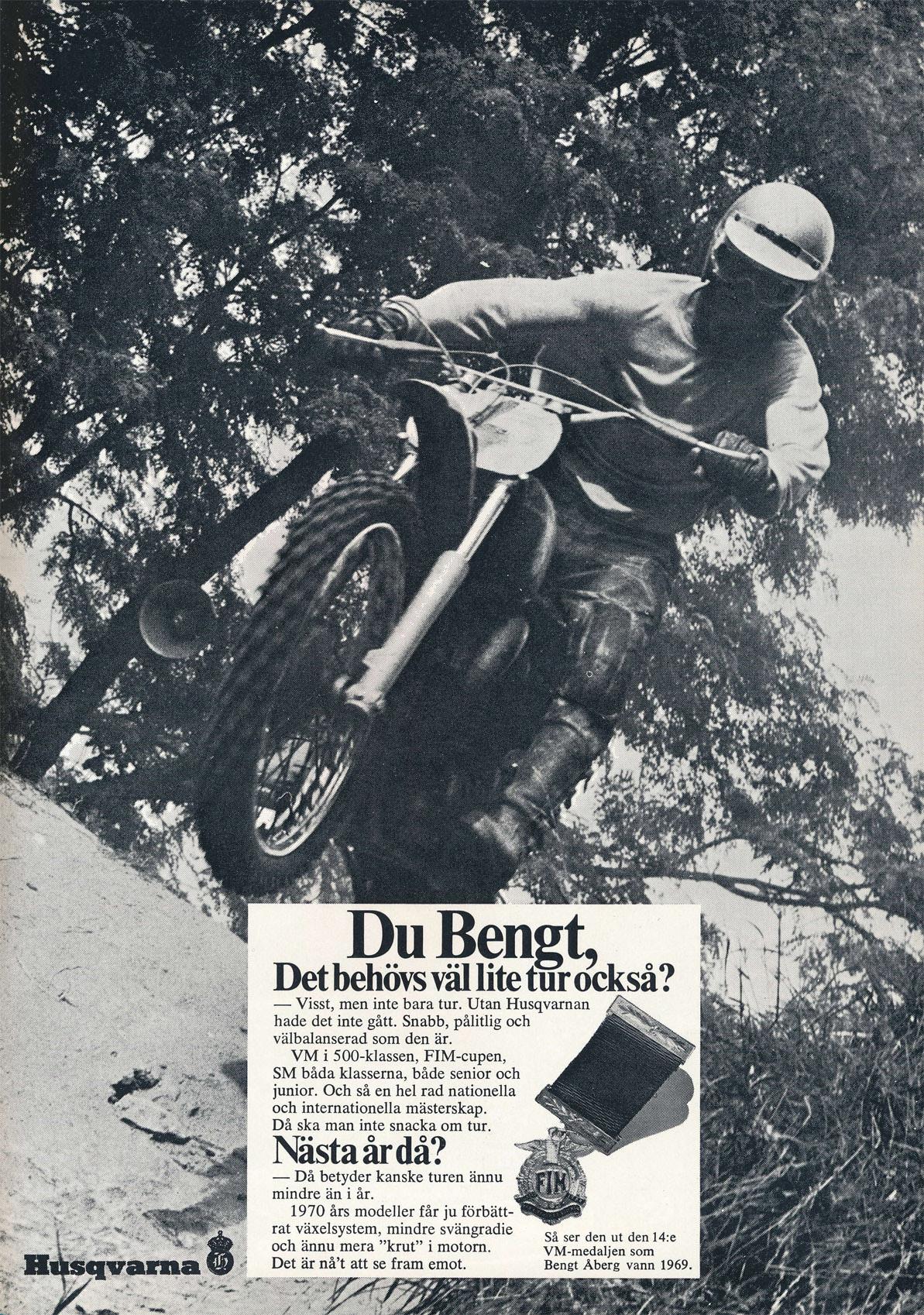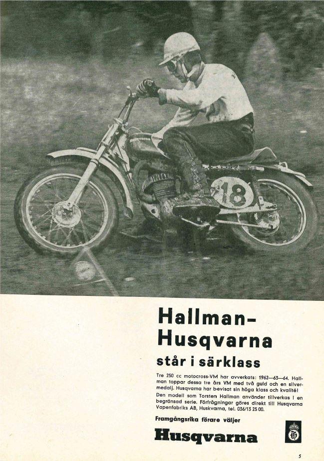 changed in 1966 when US hit the market for the Husqvarna products. Not only was MED International successful, but also triple world champion Torsten Hallman who rode 23 races with as many wins. He was the true ambassador who presented the sport to the US motorcycle fans. Shortly after, Dye and Hallman introduced the classic Inter-AM motocross series in the US, where most of the world top stars came to compete towards the end of the sixties. Now would have been the right time for the Husky people to react and invest into the future. Unfortunately, that did not happen although the US market swallowed the better part of the factory's production. From 1961 to 1970 Husqvarna only manufactured 14 000 units, of which 5 000 were made in the year of 1970 when the new Ödeshög factory had been opened.