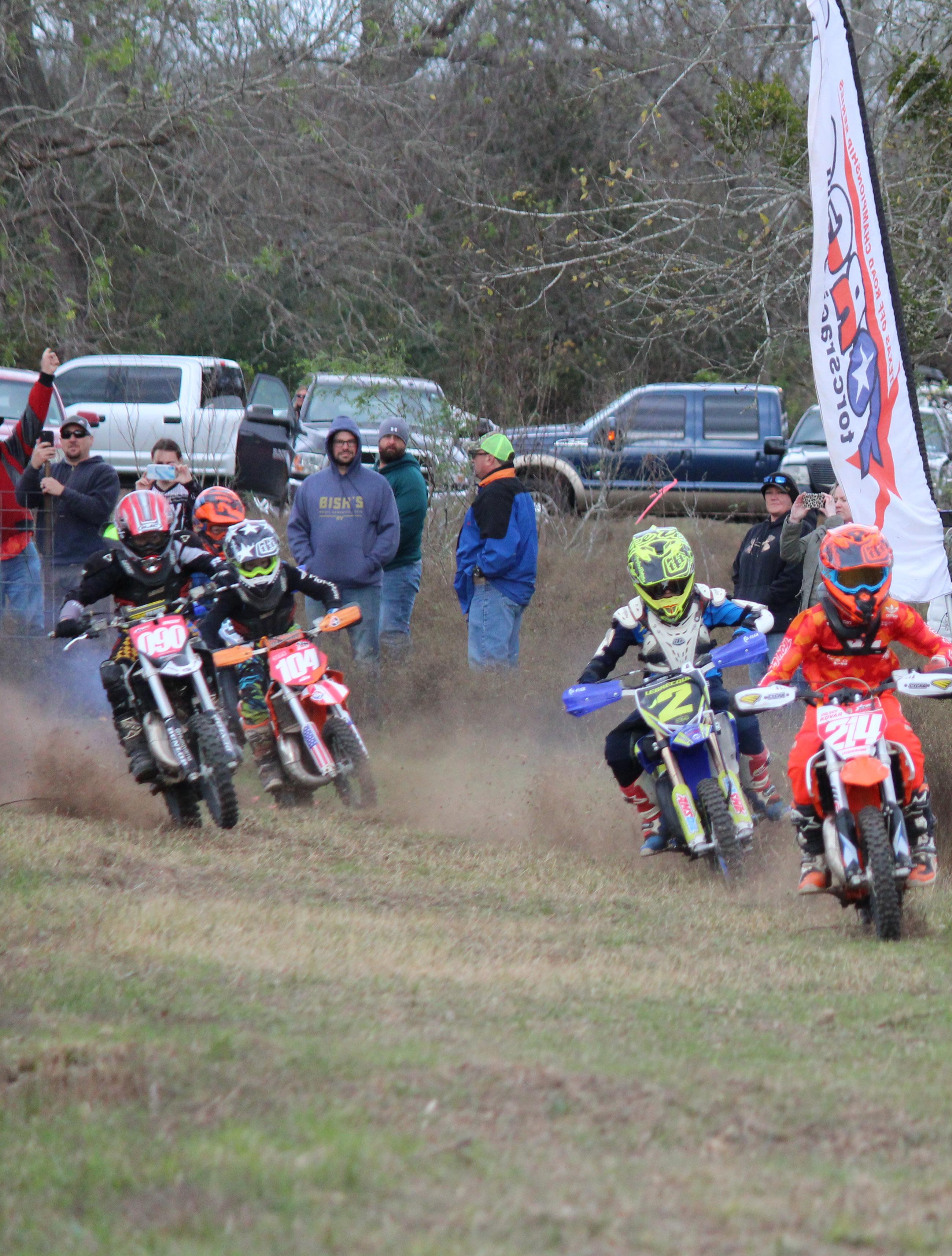 The weekend of racing continued on Sunday with similar classes. By this time, it was complete winter in Central Texas. Multiple centimeters of ice frosted the ground and bikes in the early morning hours. Little 50’s was seen moving into travel trailers to thaw out for the youngsters taking off early.
