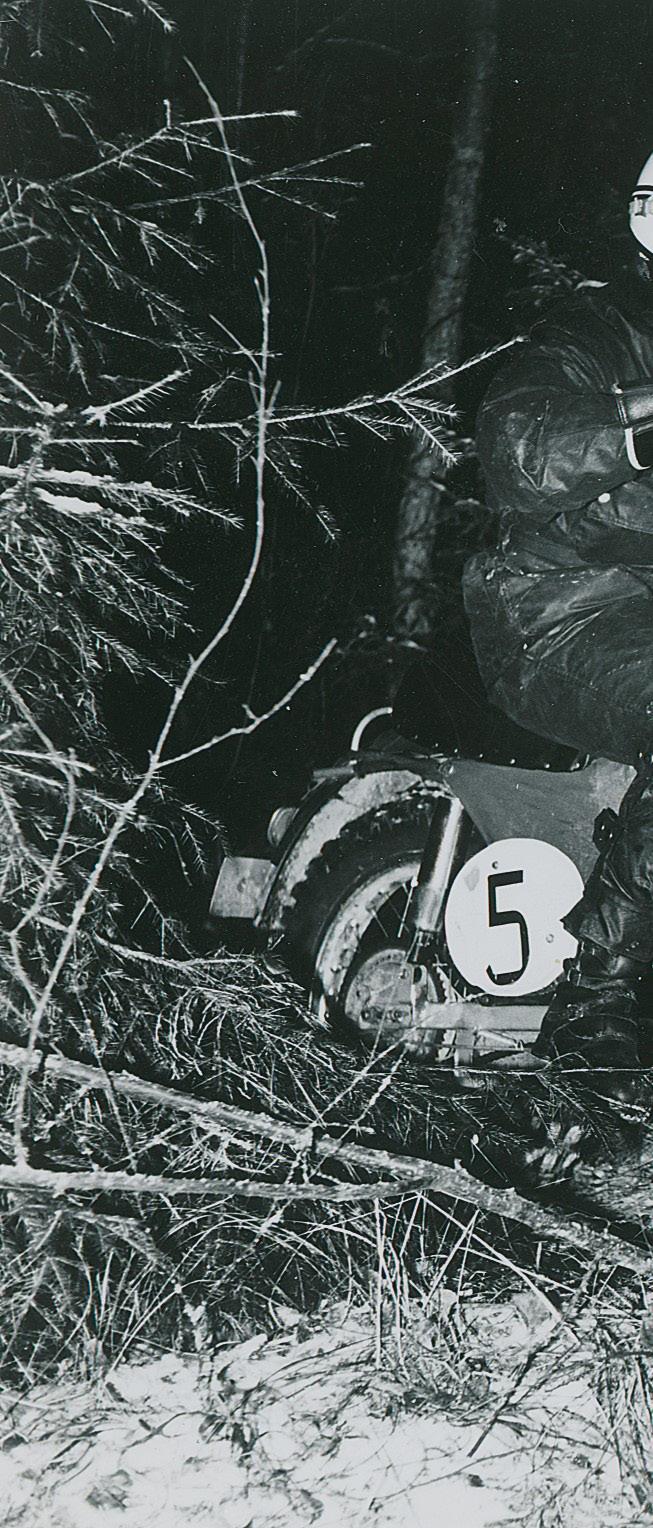 gloomy for the Husqvarna twowheelers in the beginning of the sixties. Despite motocross titles and good intentions, the board of directors had limited understanding of the potential in motorcycling. To say the least, they were rather against most of the ideas that came from the responsible people in this division. The answer lay of course in the United States. The Swedish motorcycle dealer of "MC-Trim" in Stockholm, by the name of Stig Ericson, was travelling around in San Diego, southern California.