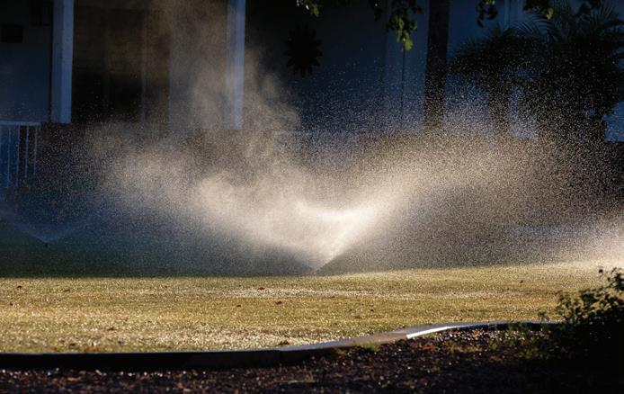 spray, causing large patches of brown throughout the lawn. High pressure not only has the potential to damage the system, it also can cause sprinkler nozzles to emit a fine mist that evaporates instead of reaching the landscape.