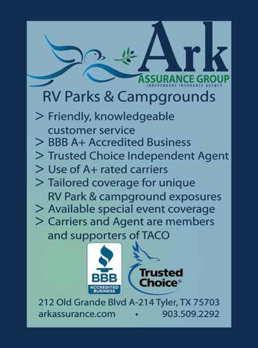 Based in Crowley, the Texas Association of Campground Owners is the 53-year-old trade association that represents 400+ campgrounds, RV parks and resorts across the Lone Star State. For more information or to book your next trip, please visit TexasCampgrounds. com or TexasGlampingResorts.com.