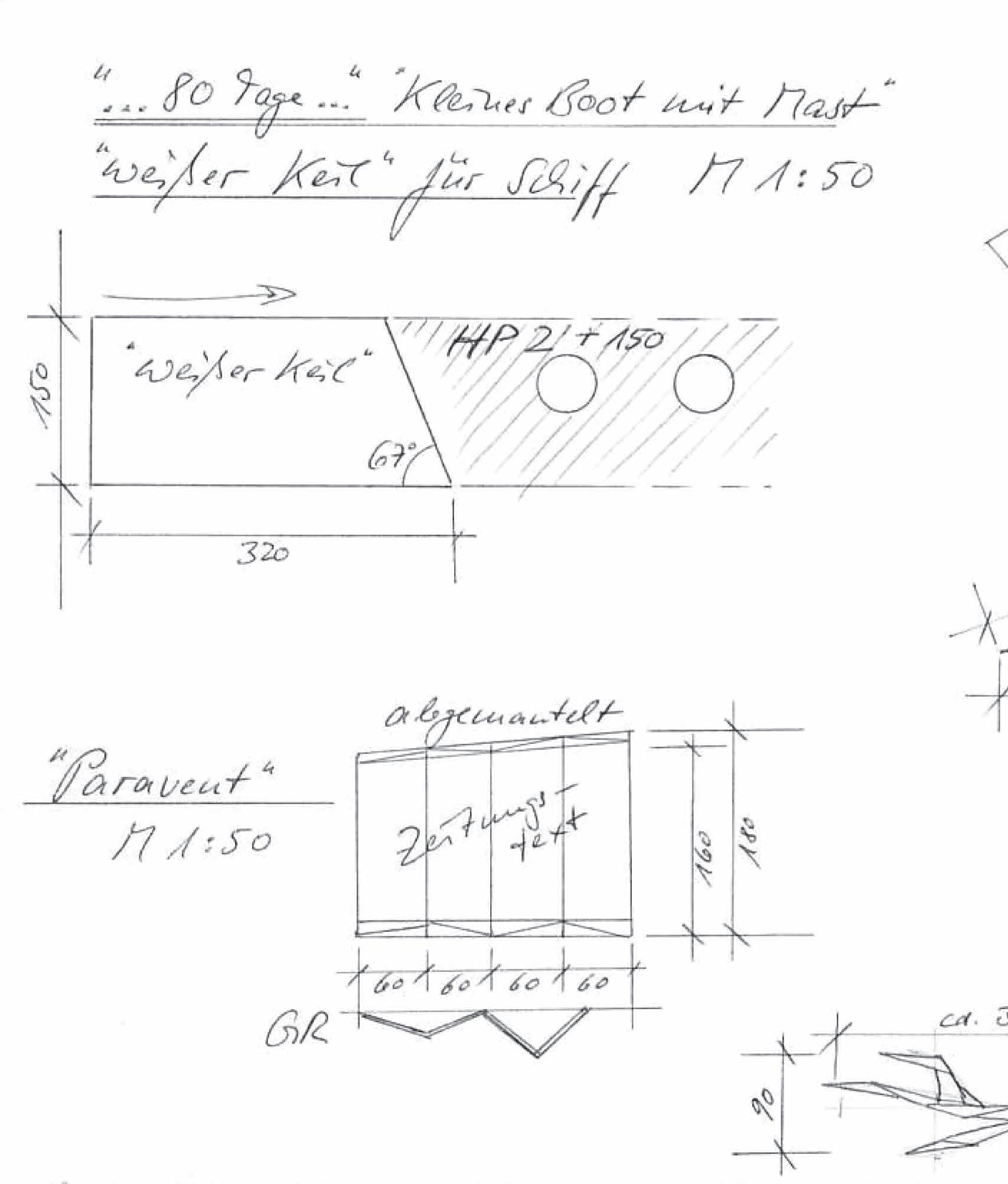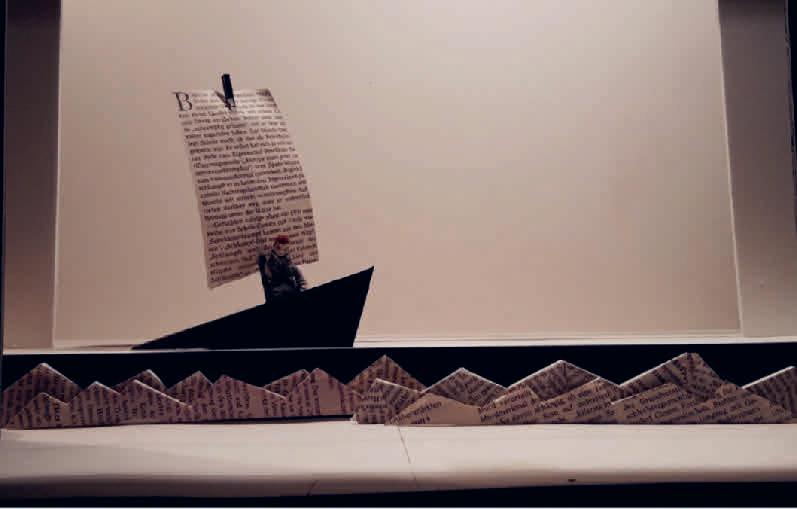 Man fragt sich, wie es möglich ist, all die Dinge, die ja fest an der senkrechten Wand befestigt sein müssen und unerreichbar hoch hängen, so schnell auszurichten. Die Antwort: Wir haben geschummelt. Als der Vorhang geschlossen war, haben unsere Requisiteurinnen und Requisiteure in Windeseile die Dinge auf dem fliegenden Teppich so angeordnet wie auf der Wand, das geht natürlich viel einfacher. Einfacher heisst aber nicht einfach! Es bleibt in jeder Vorstellung eine Herausforderung, die Bettdecke exakt so unordentlich anzuordnen, wie sie auf der senkrechten Wand montiert ist.