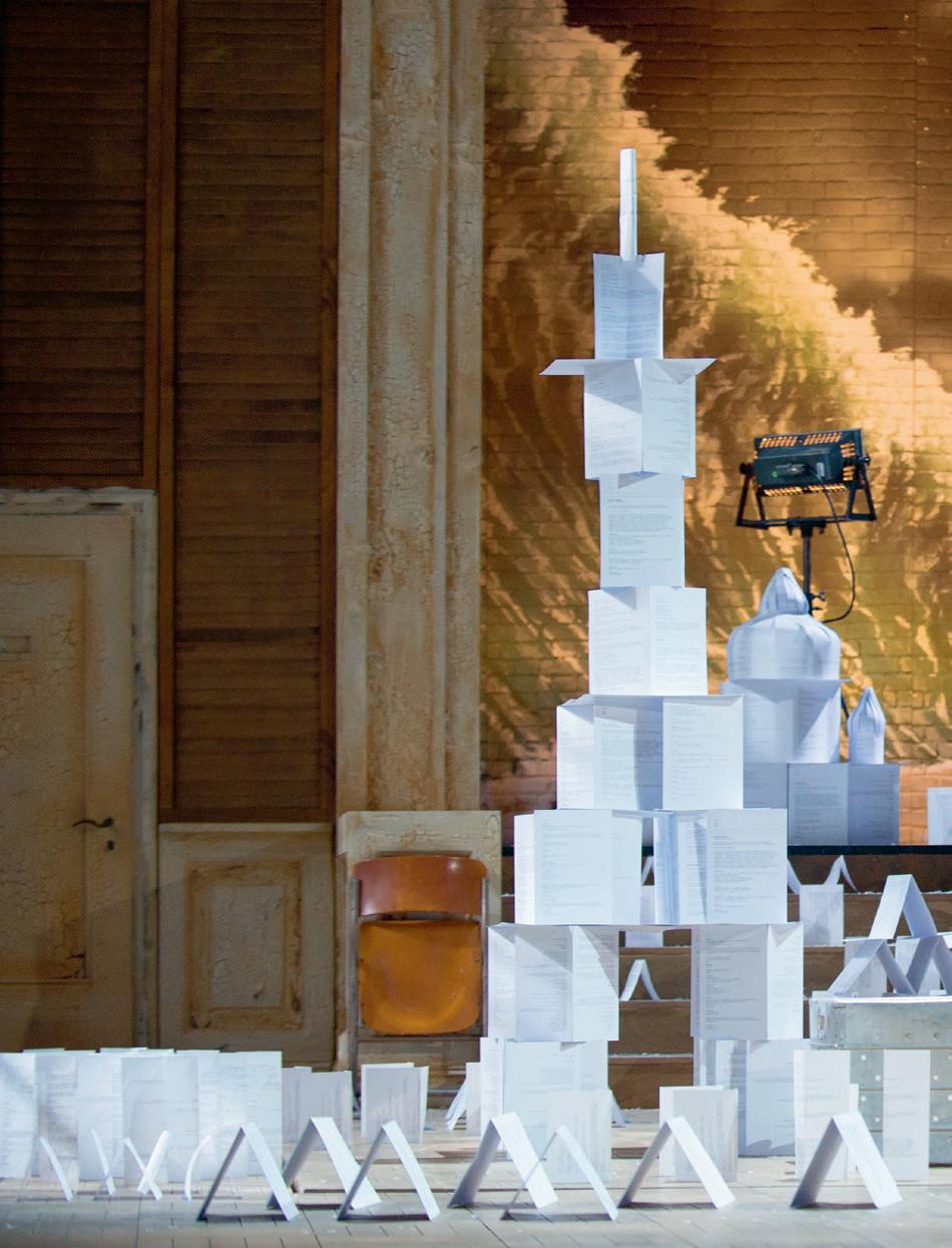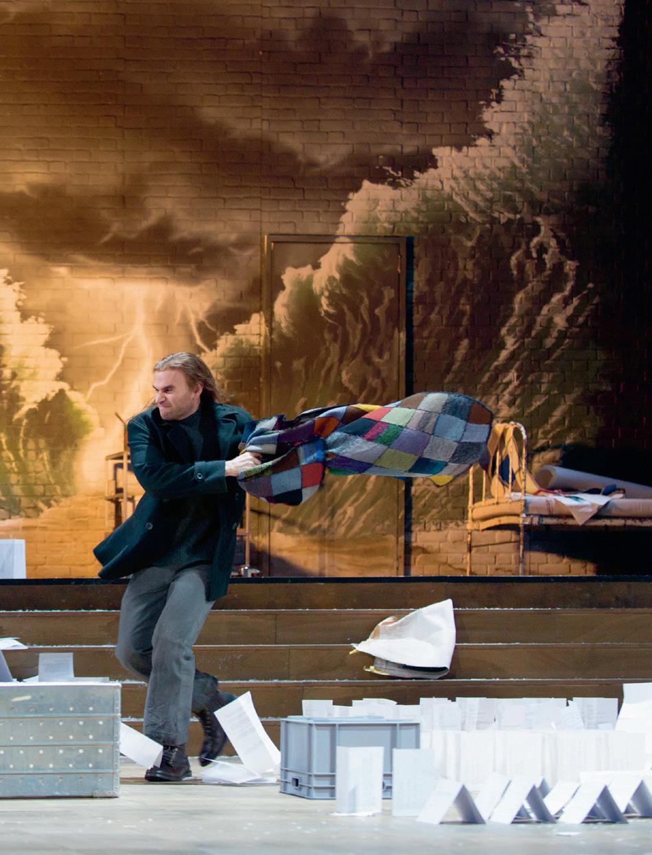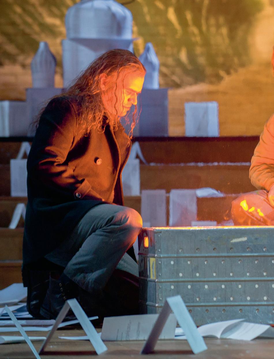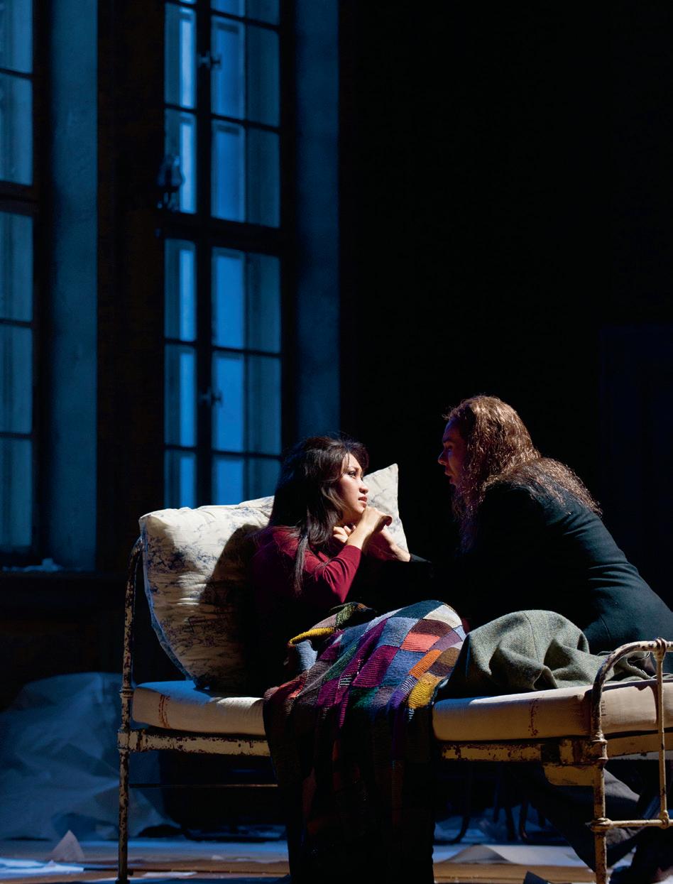 verändert hat. Der Ort der Handlung, ein Zollhäuschen am Pariser Stadtrand, mag etwas seltsam gewählt erscheinen, aber für die Atmosphäre ist er genau richtig; es herrscht eine eisige, unangenehme Kälte. Nach dem grossen Künstlertraum im zweiten Bild herrscht hier wieder das Thema des Scheiterns vor. Musetta und Marcello streiten, Rodolfo ist eifersüchtig und realisiert gleichzeitig, dass Mimì sehr krank ist – und dass er dieser Situation nicht gewachsen ist. Die beiden entscheiden, sich zu trennen. In unserer Inszenie rung ist der ganze Beginn des Bilds mit den Zöllnern, Milchfrauen und Marktfahrern, Teil des Theaterstücks, das Rodolfo und Marcello auf die Bühne des Volkshauses zu bringen versuchen. Aber Rodolfo ist unzufrieden mit dem Ergebnis. Auch seine künstlerischen Ambitionen drohen zu scheitern...