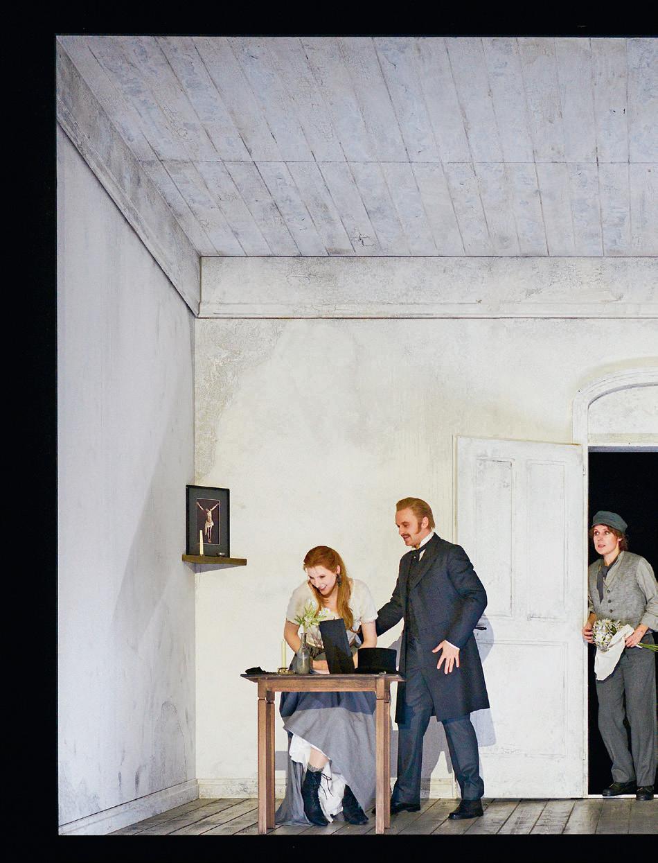 Warum lässt sich Marguerite auf diese Beziehung ein? Merkt sie nicht, dass das nicht stimmt? Das ist einer der heikelsten Punkte des Stoffes – übrigens auch bei Goethe. Es kann allzu leicht geschehen, dass Marguerite zu einem hübschen, aber etwas dummen Mädchen wird, das der durch und durch schlechten Männerwelt zum Opfer fällt und am Ende ihren Trost in einem faden Gottvertrauen findet. Das ist eine Gestalt, die mich nicht interessieren würde, ebenso wenig wie das dahinter stehende Frauenbild. Und auch Gounods Musik scheint mir viel mehr das Porträt einer jungen Frau am unteren Ende der sozialen Leiter zu zeichnen, die irgendwie sehen muss, wie sie in den Strukturen dieser Gesell schaft zurecht kommt. Aber natürlich träumt sie davon, dass es einmal anders sein könnte, dass sie am Leben der Gesellschaft mit ihren Konsumverlockungen teilhaben könnte. Wir sehen das sehr klar in der Szene, wo sie den Schmuck