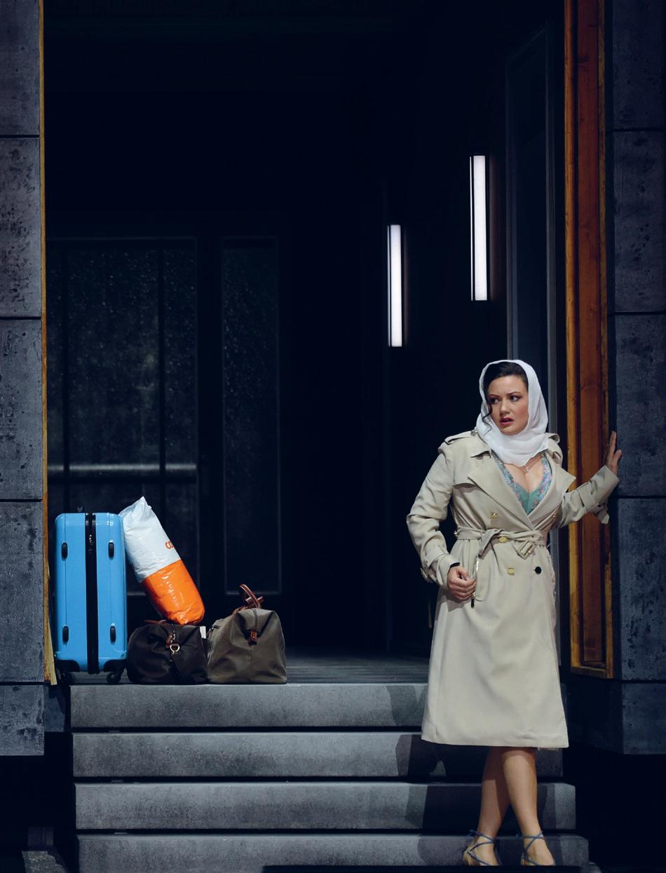 Wir wollten das natürlich nicht einfach unreflektiert wiederholen und das Publikum womöglich noch animieren, über das moralisch fragwürdige Wesen der Frauen frivol und wissend zu lächeln. Das wäre ja furchtbar. Fiorilla singt in ihrer Auftrittsarie: «Es ist eine Dummheit, nur einen einzigen Mann zu lieben.» Was ist denn, wenn dieses Credo nur eine schöne Vorstellung ist, die von aussen an sie herangetragen wurde, wie unsere moderne Medienwelt uns ja andauernd Vorschläge zur Selbstoptimierung und zum Glücklicherwerden macht? Dann könnte das Bild von der jungen Frau, die sich nach vielen Liebhabern sehnt, eine SelbstKonstruktion sein, die Fiorilla aus einem tristen Ehe und Familienalltag heraus entwickelt. Sie ist den Umständen geschuldet, in denen sie sich befindet, und die versuchen wir deutlich zu zeigen. Sie performt die Verführerische mit den Verhaltensmustern, die sie sich in den Medien abgeguckt hat. Dadurch entsteht eine Komik, aber auch eine Mehrdimensionalität in der Figur. Man versteht dann viel besser, warum sie auf den attraktiven jungen Türken zugeht, der nebenan neu eingezogen ist, und an ihm ihr neues Selbstbild einmal ausprobieren will.