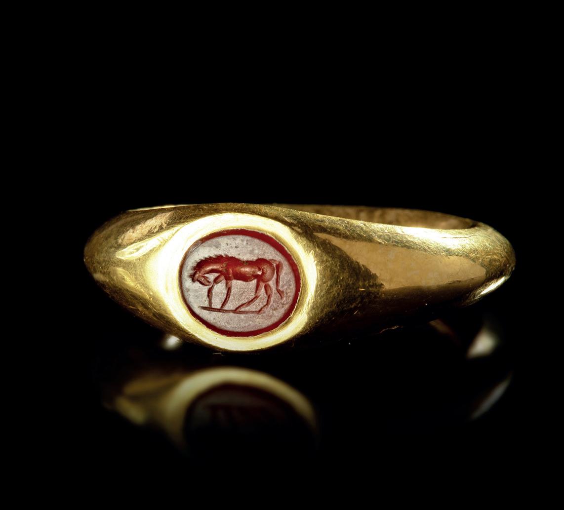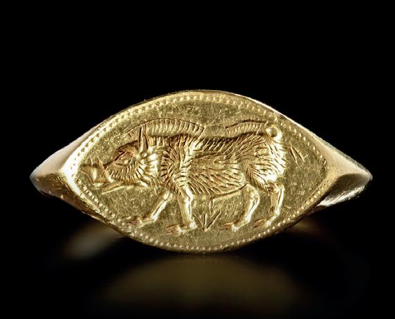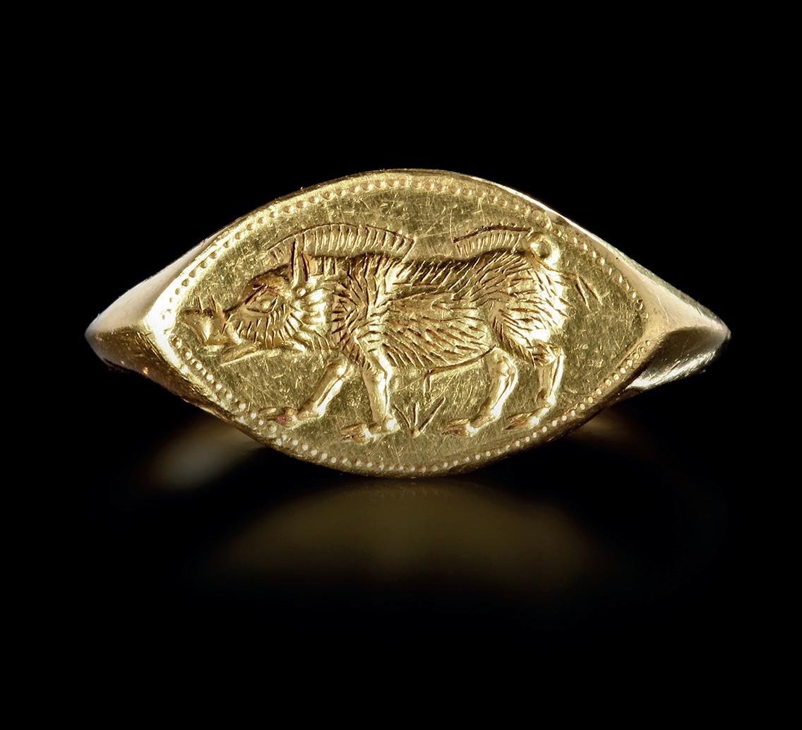 AN ARCHAIC GREEK GOLD RING FEATURING A WILD BOAR – CIRCA LATE 6TH CENTURY BC