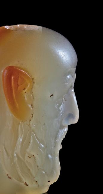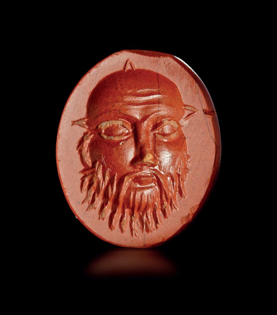 SCARABOID WITH JUGATE HEADS OF HERACLES AND APPOLO. 4/5th c AD