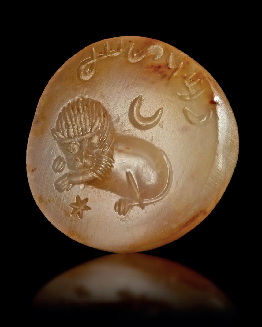 AN EASTERN GREEK BANDED AGATE SCARABOID OF A WALKING LION –5TH TO 4TH CENTURY B.C.