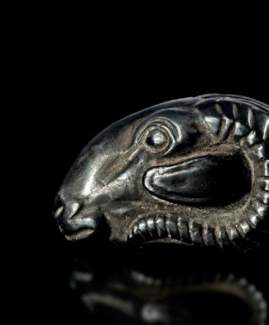 A highly important hematite weight in the form of a ram's head. This magnificent weight, one of the finest known, shows the well detailed head of a ram.