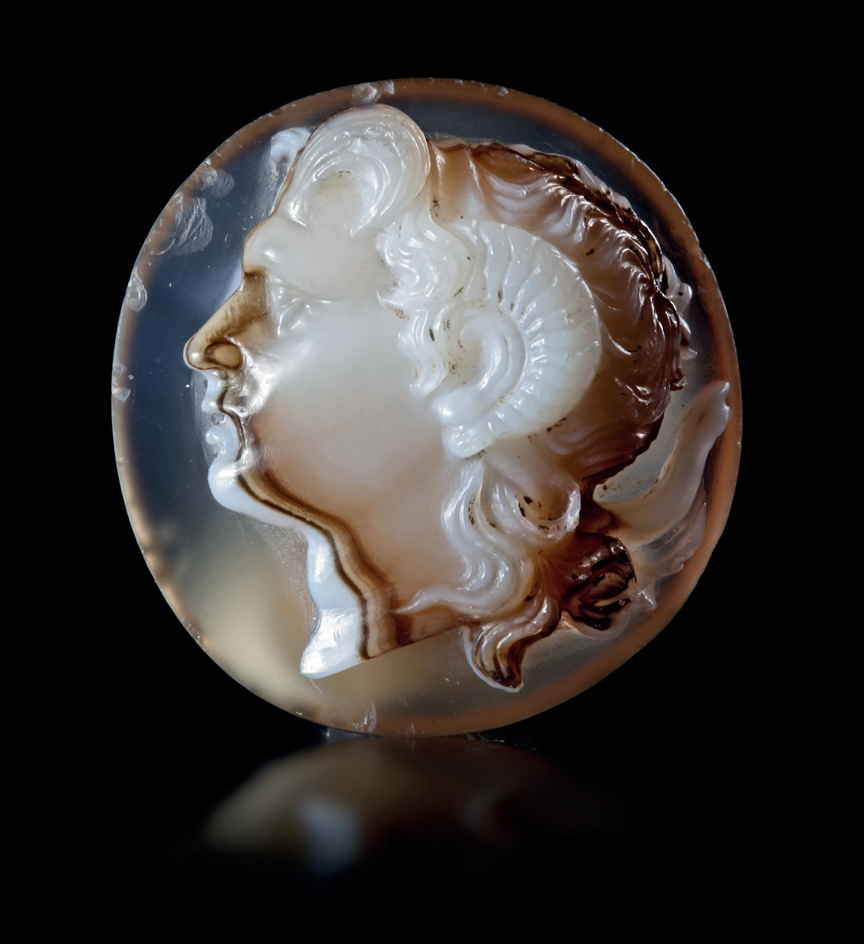 The nice colour intaglio is depicting the portrait of a Seleucid king probably Demetrius the second.