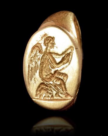 A LATE HELLENISTIC GOLD RING WITH AN INTAGLIO OF APHRODITE/VENUS.