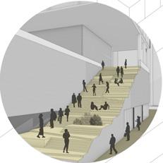 Courtyard Unleashed pays tribute to the historic fabric of the surrounding neighborhood and experiments with the familiar typology of the courtyard through a massing strategy based around three interlocking courtyards. The largest of the three courtyards spans horizontally across the full width of the site, promoting neighborhood pedestrian connections, and offering a large outdoor space which can be shared between the school and the neighborhood. The school’s inhabitable rooftop not only generates additional open space, but also provides residential access to two vertically-oriented courtyards containing interior common areas, green spaces, and circulation connections between the other courtyards, sidewalks, and upper-level gardens.