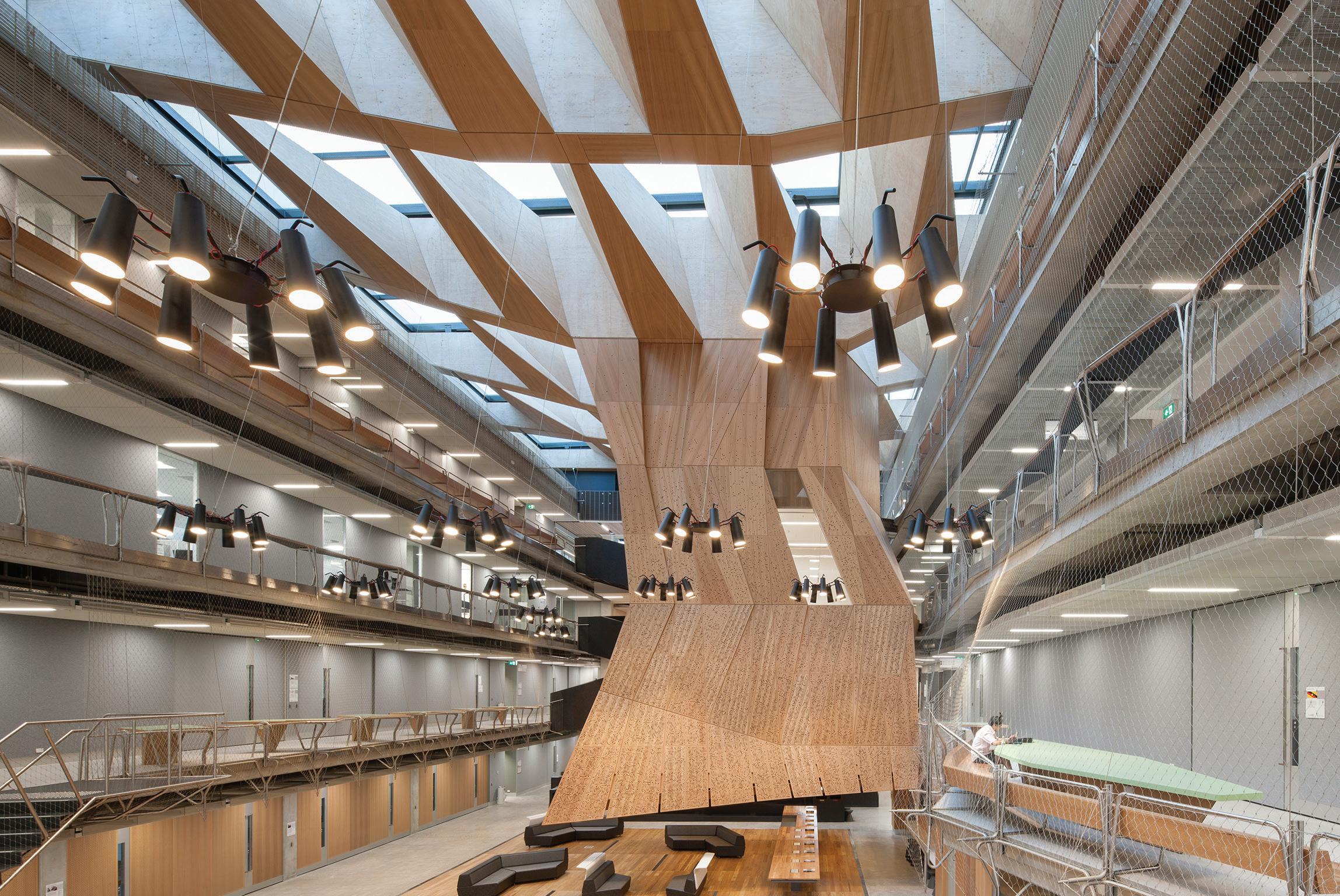 In 1937 the University of Pittsburgh dedicated one of the most iconic college campuses in the United States, the forty-two-story Cathedral of Learning designed by Charles Klauder, one of the country’s leading collegiate architects in the period before World War II. Standing atop a hill in the center of Pittsburgh’s Oakland neighborhood, the building celebrates pedagogy, the attainment of knowledge, the capacities of modern building technology, and a land-poor university’s ambitions (figure 1). If, thanks to Rem Koolhaas, New York’s Downtown Athletic Club (Starrett and Van Vleck, 1930) is the better-known hybrid building, the Cathedral is a purer skyscraper and, perhaps, contains the more compelling, publicly available interior. Its mix of programs includes a soaring commons space built of load-bearing stone, thirty-one “nationality rooms” designed in conversation with local ethnic communities, (originally) the main stacks of the university library, a theater, a food court, lounges, labs, more than twenty floors of classrooms and lecture halls, and departmental and faculty offices, all made possible by steel-frame construction, elevators, and electric lighting, if not central air conditioning (figure 2). It is the predecessor of contemporary educational buildings such as Diller Scofidio + Renfro’s Roy and Diana Vagelos Education Center for the Columbia University Medical Center in New York.