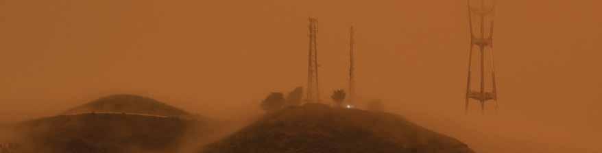 Above: Hazy orange skies over San Francisco, California amidst wildfires north of the city on September 9, 2020.