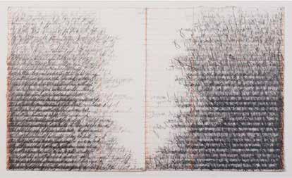 Poem Drawing series (2002 to present) is created with graphite and colored pencil on paper, 12 in. x 20.5 in.