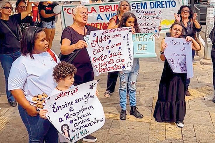 Contra os maus-tratos. A praça Tiradentes foi palco, no sábado (26), de um protesto organizado por protetores de animais de Betim contra a soltura do tutor da cadela Bruna, da raça Fila, arrastada pelo engate do carro dele. Na semana anterior, o grupo também havia se reunido em um ato no bairro Angola.