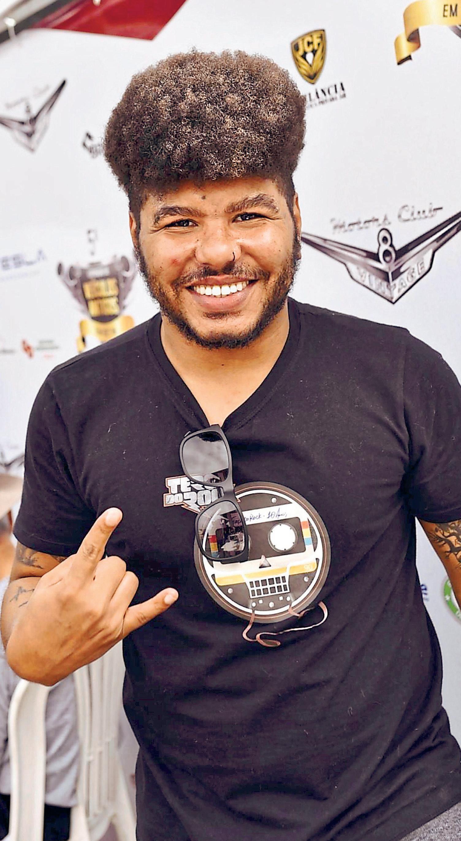 e gestor de tráfego Pedro Brum (P&B Comunicação) durante o 5º Encontro de Carros Antigos, no estacionamento do Poliesportivo Divino Braga