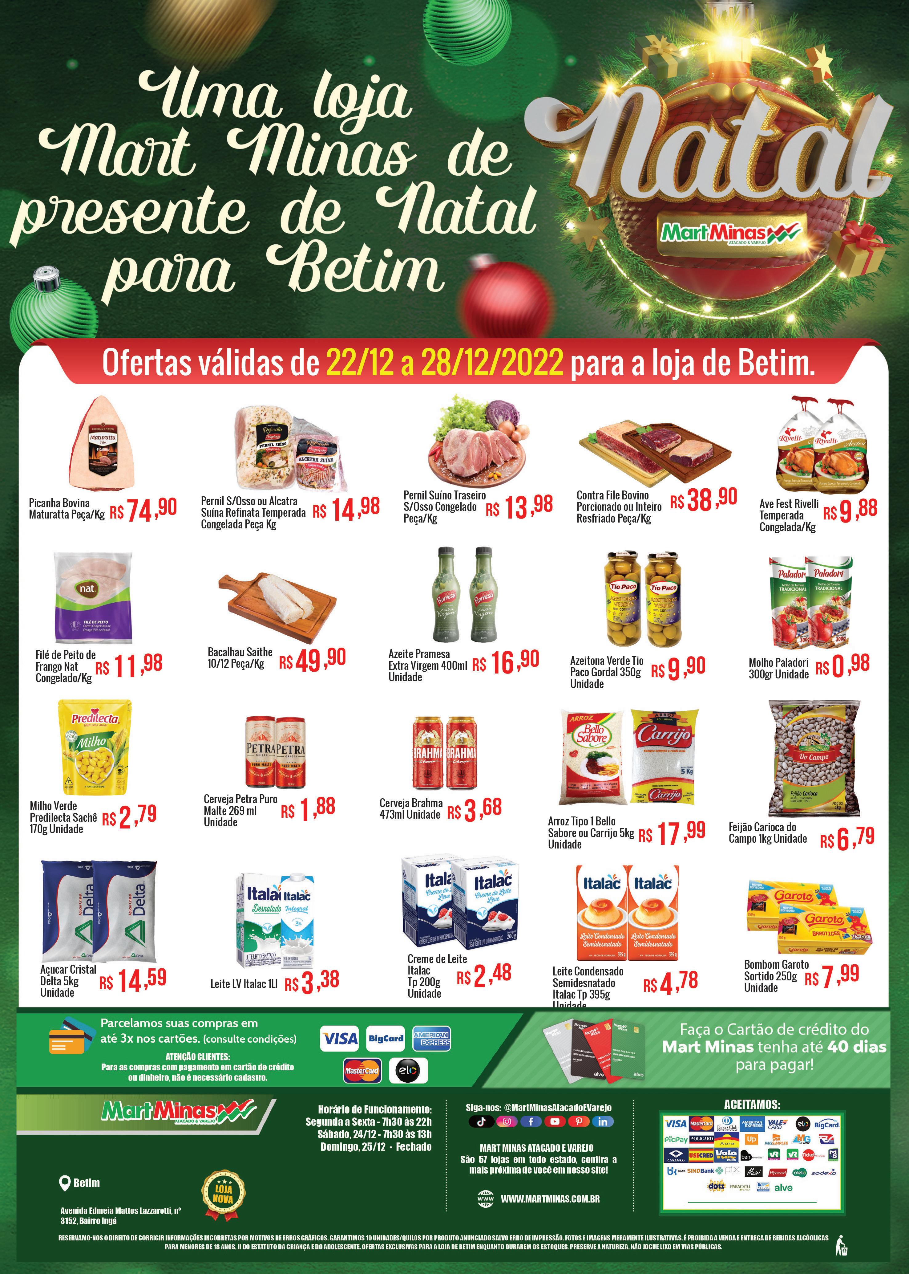 Mart Minas. A primeira unidade da rede em Betim já está em funcionamento, após ter sido inaugurada nessa quinta (22). A loja fica na avenida Edmeia Matos Lazzarotti, no Ingá, em uma área construída de 10,3 mil m². Com a abertura do espaço, cujo estacionamento comporta