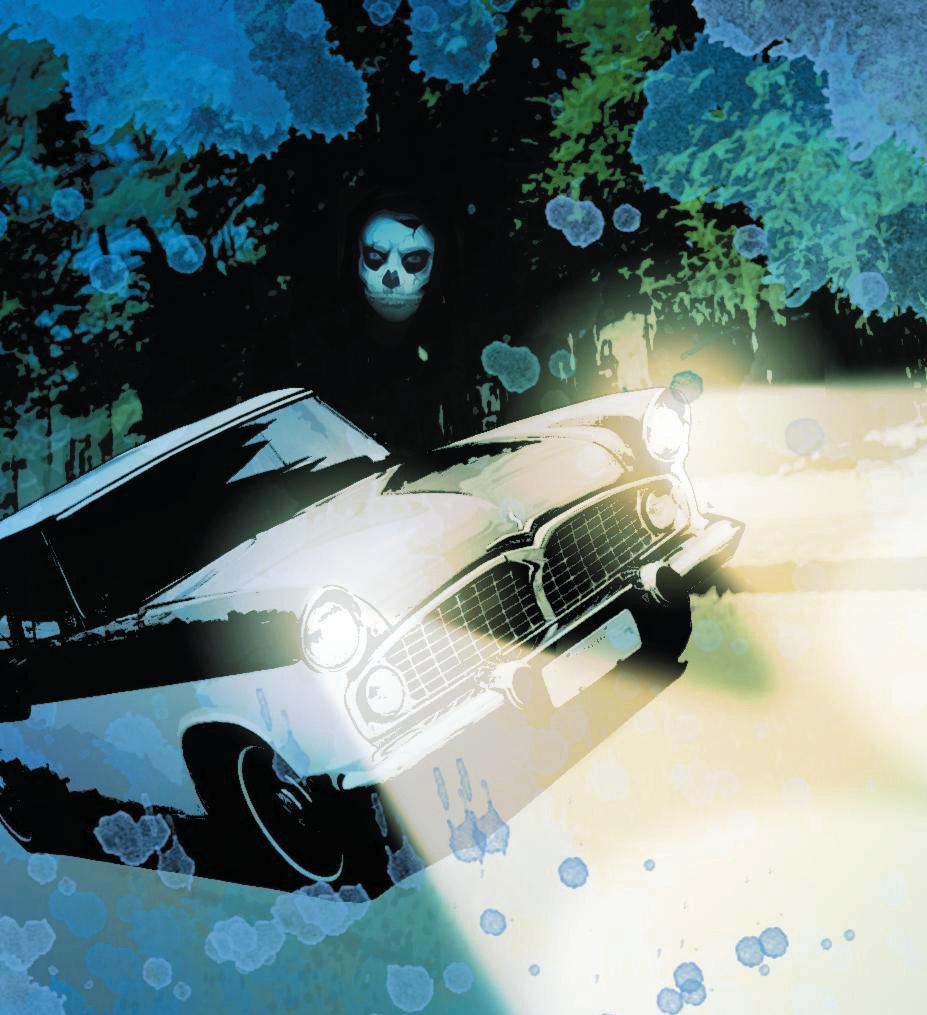De repente, um farol, um Simca que se aproximava. Um grito e uma freada.