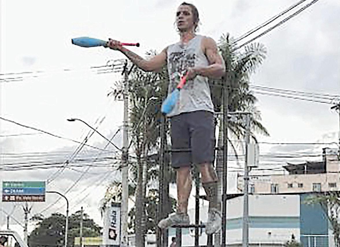 Arte de rua. O malabarista Nicolas Camacho Gomez chamou a atenção de motoristas e pedestres no centro de Betim, nesta semana, ao se equilibrar sobre uma escada fazendo malabarismo