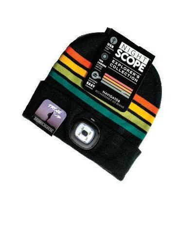 Night Scout hats... a must have for winter! A cozy toque with a rechargeable LED headlamp built-in.