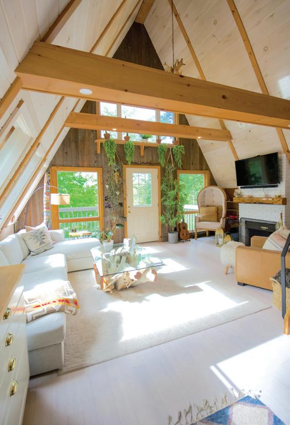 This A-frame cabin nestled in the woods makes a perfect family getaway or an investment vacation property. Natural light floods the space from abundant windows and the open-plan interior means no one is left out of family gatherings. The contrast between the white ship-lap walls and the natural wooden beams gives the space a relaxing weekend vibe. Includes two cottages on the property, each with two bedrooms and two baths. The main cabin is four-season ready for family gathering or a full-time home.