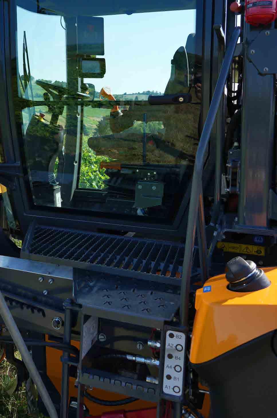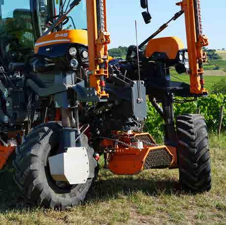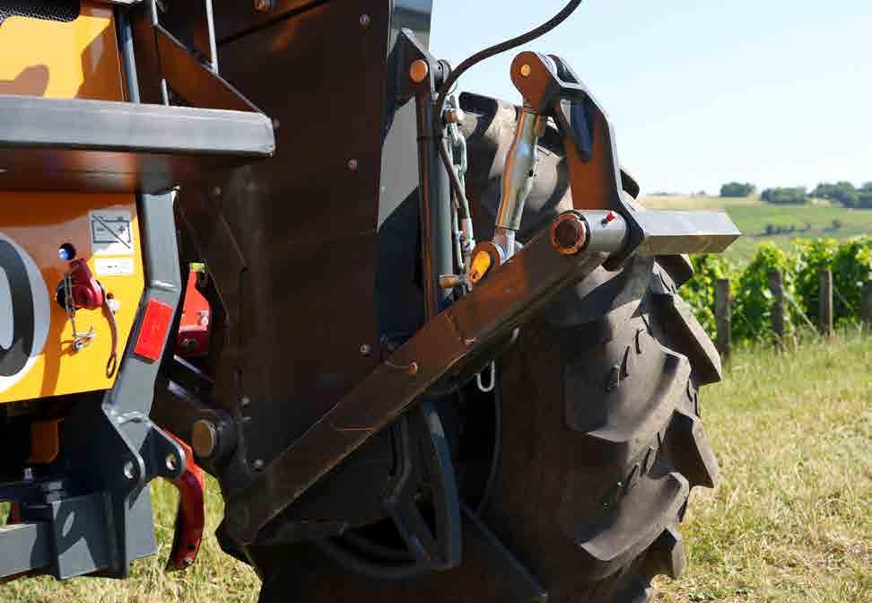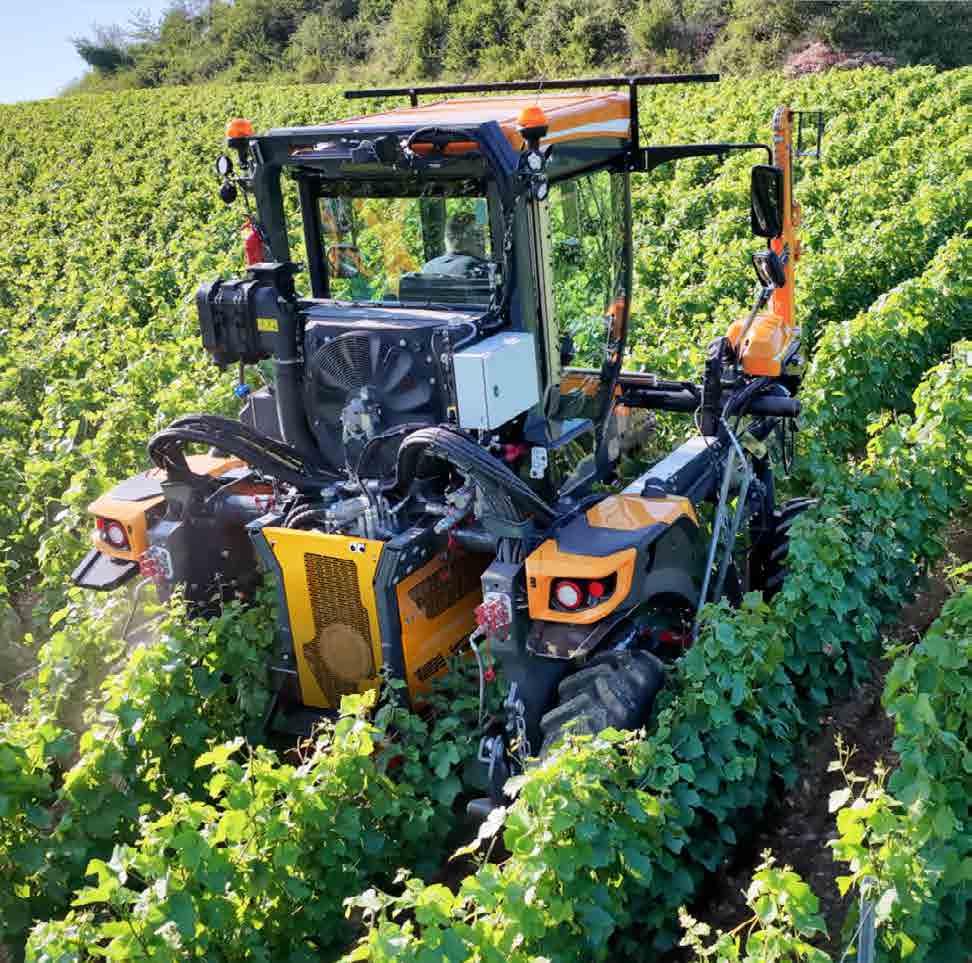 offre un pilotage souple et précis. Grâce à son empattement court, sa voie variable hydraulique et sa capacité à travailler en double ou triple rang, il s’adapte à tous les profils de parcelles, même les plus pentues.