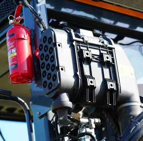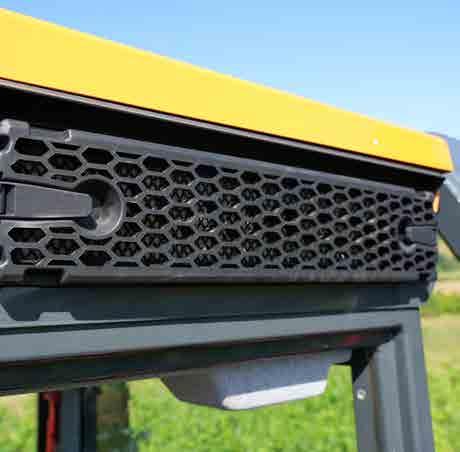 • Le filtre à air de la cabine et le filtre à charbon actif sont situés à proximité de la porte, vous les atteignez facilement depuis la plateforme d’accès à la cabine. Le système d’ouverture de la grille est rapide et sans outil.