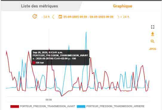 • Un menu disponible sur votre pupitre vous permet d’avoir un diagnostic instantané de votre porteur. Cela facilite la remise en état rapide de votre enjambeur, dans le but de limiter au maximum son temps d’immobilisation et de garantir une productivité optimale.
