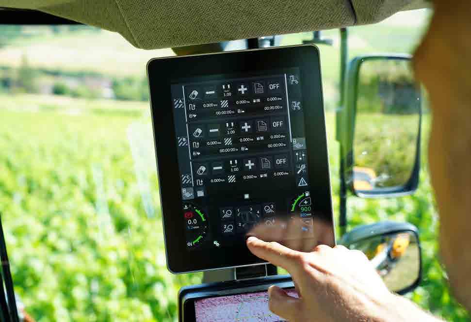 • Intègre : régulateur de vitesse, compteur d’hectares, pages outils génériques.
