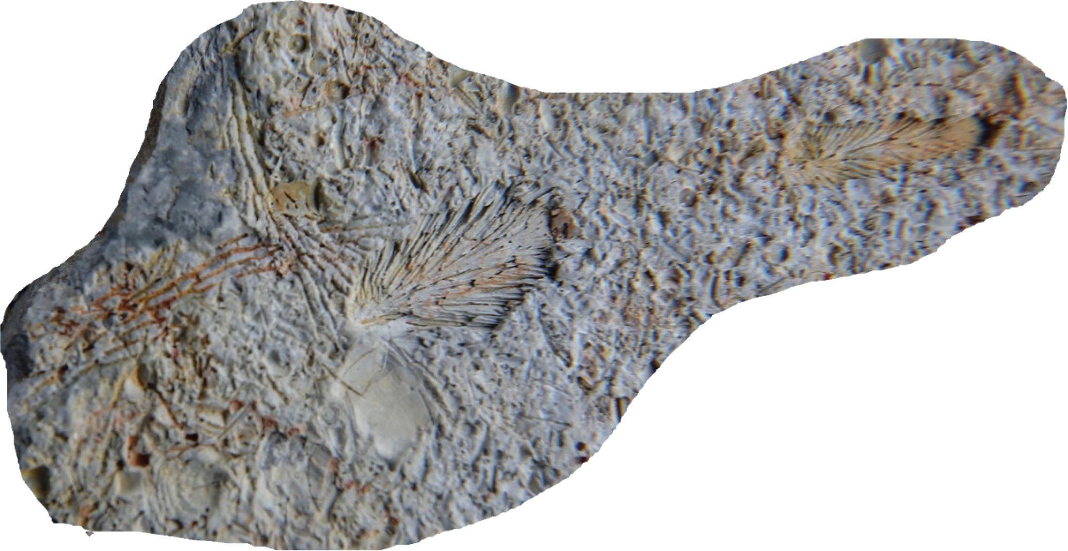 marin kuno antaranya brakiopoda, bryozoa, karang, trilobit dan krinoid yang berusia sekitar 350 juta tahun. Teradapat juga fosil-fosil tumbuhan darat yang terawet bersama terutamanya pakis. Kepelbagaian spesies fosil ini telah ditemui oleh para pengkaji terdahulu ketika menjalankan kajian geologi di kawasan ini. Fosil-fosil ini sangat melimpah di suatu lapisan batuan tertentu khususnya di bahagian lapisan batu lumpur.
