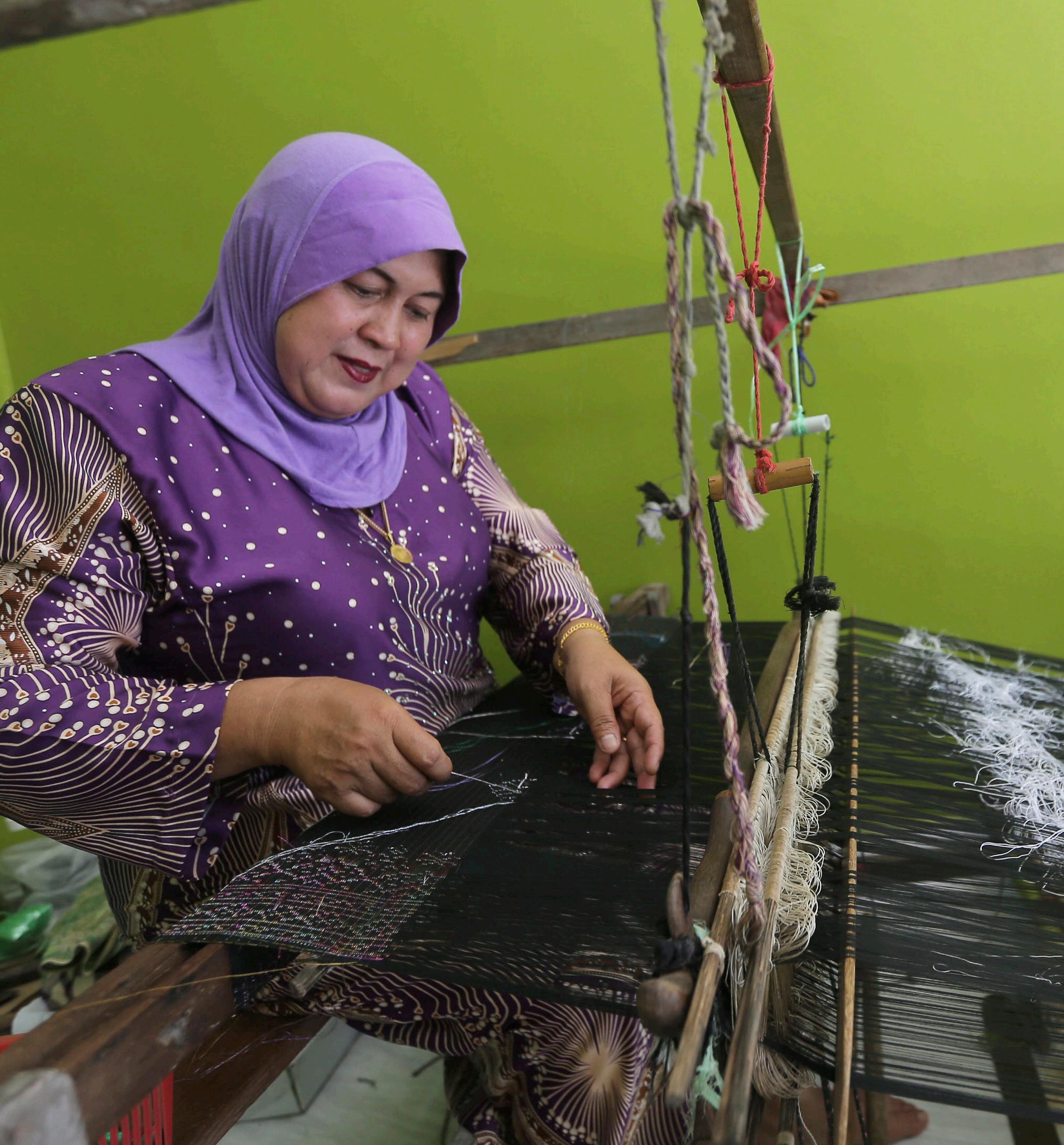 Songket is commonly produced by small enterprises, and most likely the owners are experienced Songket weavers themselves. There are more than 80 weavers in several areas including Kampung Gong Tok Nasek, Pasir Panjang, Tebakang, and Losong who are actively making Songket and earning lucrative incomes. What is impressive about skilled weavers is that they never draw the motifs on paper first before transferring them to the fabric, but these motifs are woven during the process as they are born out of the high and unique creativity and imagination of these experienced weavers.
