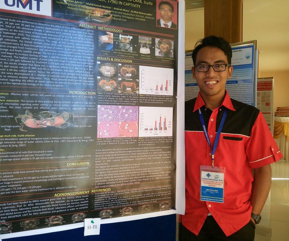 In 2019, at the recommendation of friends and some of the staff at AKUATROP, Dr. Aaqillah entered UMT’s Three Minute Thesis (3MT) competition. Her presentation titled “Master Chef: A cooking saviour our crabs need” landed her third place, which qualified her to compete at the national level. “Honestly, it was a bit difficult to explain my work to someone not knowledgeable in my field, especially when it came to explaining the jargons,” she said. “But I tried my best to use language that was closer to the public.”