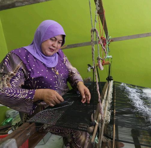 Songket weaving is done in two stages. The first stage involves weaving the basic cloth, while the second stage involves