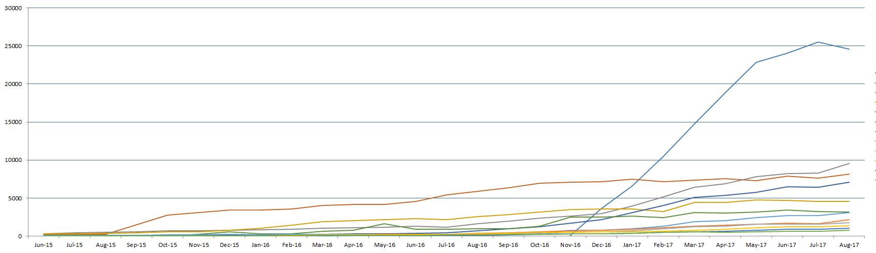 43 users began using the tool in the first month. User count has steadily increased and each month there are between 140-180 users accessing Self Service Analytics.
