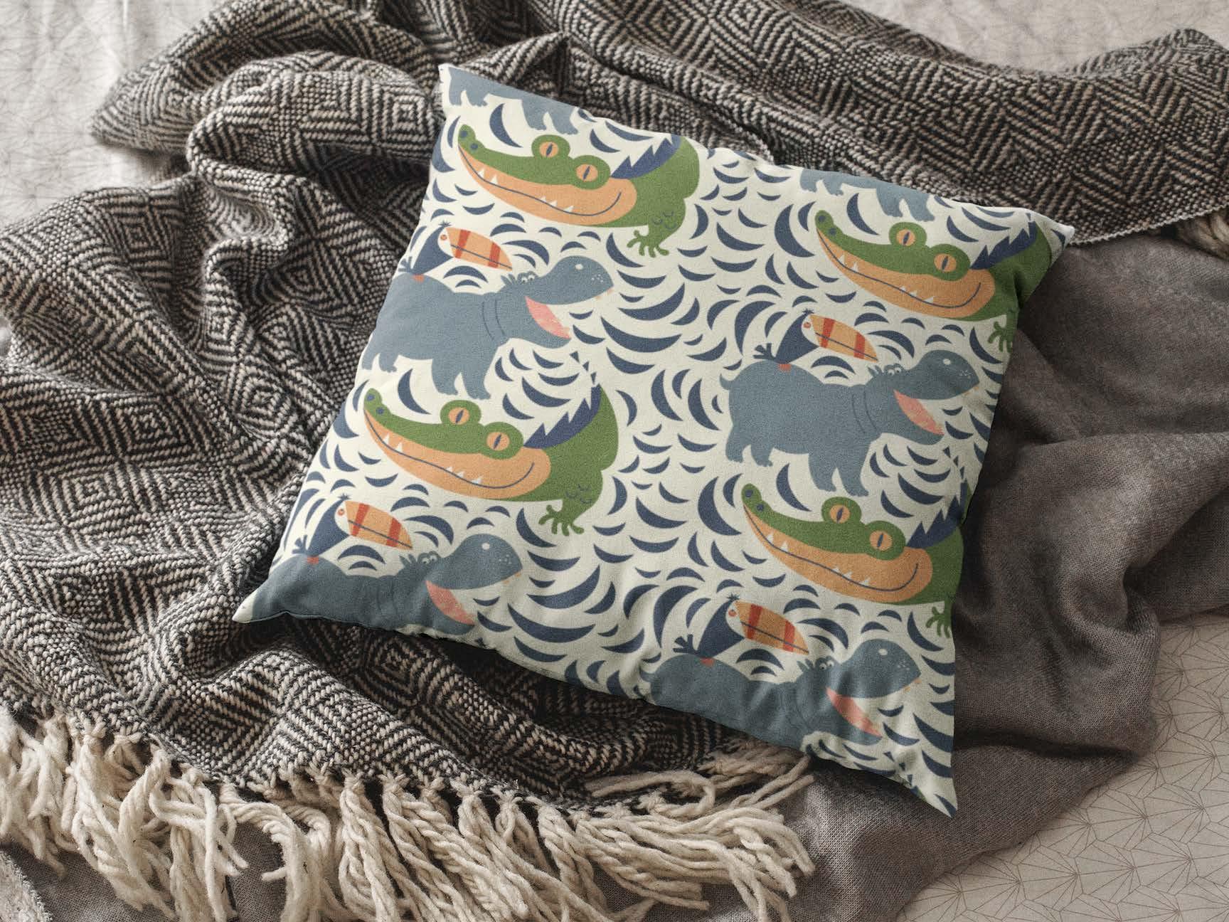 This collection features a range of hand-drawn quirky animal designs, including a funny hippo, cute toucan and cool crocodile. Coordinate fabrics with hand-stamped block prints as well as blender fabrics with a nautical wave pattern are perfect to create a cohesive look throughout your designs.