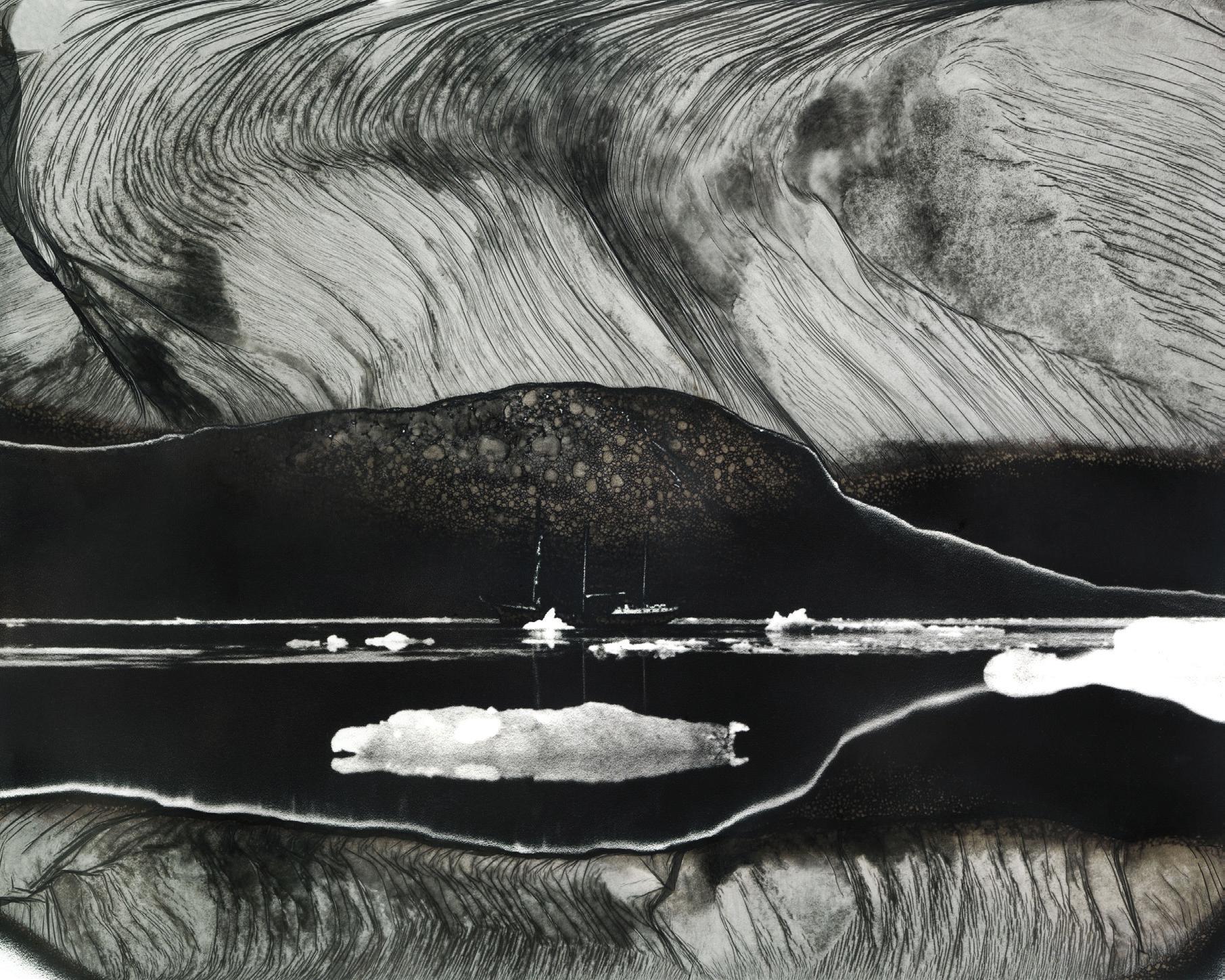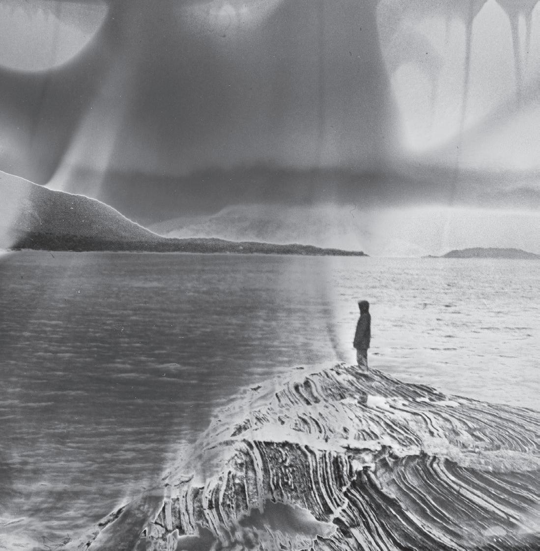 Ella Morton’s analog manipulations speak to her layered experiences of exploring cold northern climates. Her photographs of Arctic lands simultaneously convey stoic beauty and unprecedented environmental changes, overlaid with physical (and metaphorical) human manipulations.