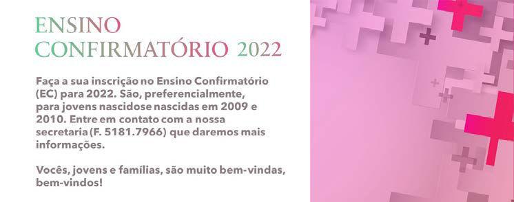 além do sentimento, da subjetividade ou da afetividade. Quem conhece a fala do amor de Deus não pode agir de maneira oposta à sua vontade. Nesta grande vontade de Deus não há espaço para a violência, ódio, discriminação, opressão, miséria, injustiça, destruição do meio ambiente. Por isso, não podemos observar todas essas coisas sem agir de maneira clara e evangélica – no sentido mais concreto desta palavra. Portanto, não amar só de palavra, como na recomendação da carta de João, nos remete a um novo patamar. Um bom exemplo é a parábola do bom samaritano, conforme Lucas 10, 25-37. O amor de um samaritano por uma pessoa desconhecida e ferida vai além das palavras, ou seja, vai até a ação concreta. O Tema e o Lema do Ano 2022 chama a atenção para a característica básica da fé: o amor. Sem amor, a fé não se efetua. Sem amor, nada somos. A arte do Tema do Ano nos incentiva a prestar atenção a cinco verbos: acolher, servir, ensinar, pacificar e dialogar. Neles, manifestase o amor a Deus e às pessoas. Sejamos imperativos e atuantes neste novo cenário que se abre. Um abençoado 2022 com muito amor no coração e nas mãos.