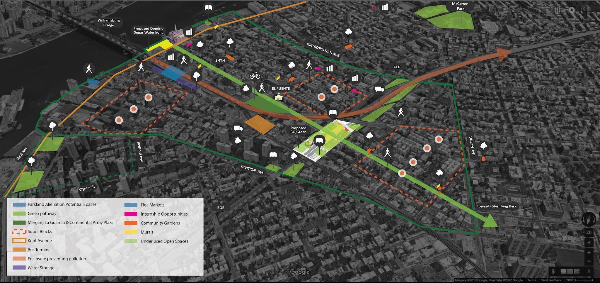 To map and study the existing conditions in Southside Williamsburg with a focus on the open space system, including priority parks, to develop recommendations to promote the overall goals of the ‘Green Light District Initiative.’