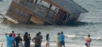 En playas de Coatzacoalcos encalló el restaurante flotante “El Atracadero” de Tuxpan, Veracruz y que se desprendió del malecón del municipio al norte de Veracruz.