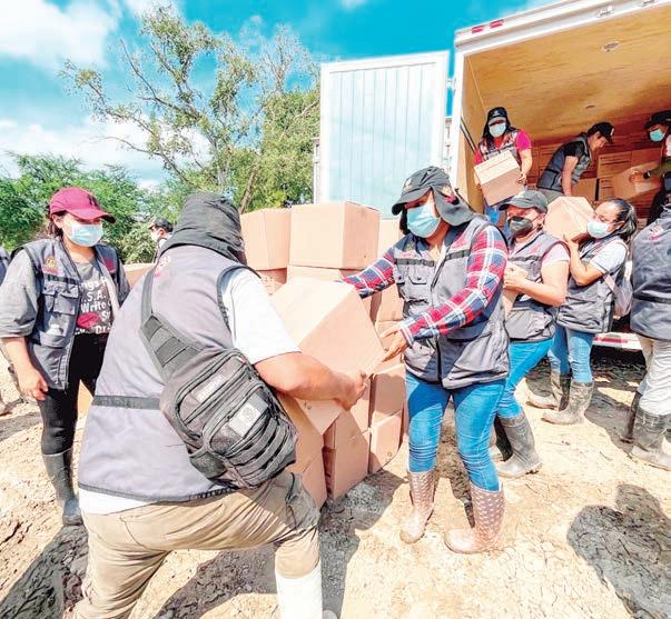 Mantiene presencia constante en las zonas afectadas. Destaca avances en limpieza, restablecimiento de servicios, entrega de víveres y atención médica.
